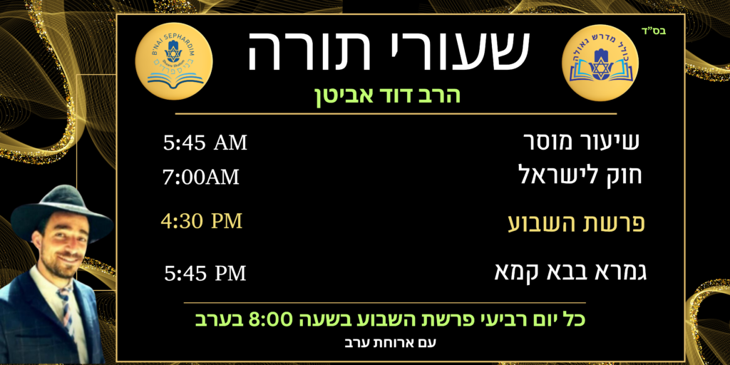 Our shiurim and classes offer meaningful Torah learning for all levels, grounded in Sephardic tradition and practical halacha. Through engaging study and thoughtful discussion, we strive to deepen understanding, strengthen emunah, and inspire growth in everyday Jewish life.